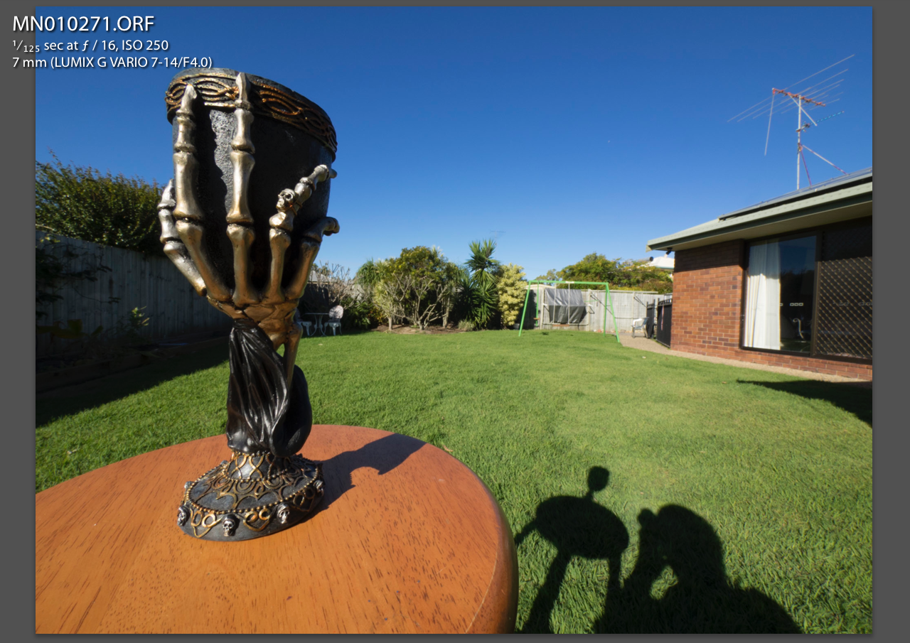 We now move to a 12mm lens (24mm on FF). DOF is still deep but distortion is a lot less.